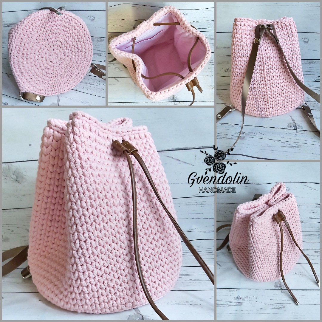 Kézzel horgolt összehúzós kerek hátitáska – stílus és kényelem egyben